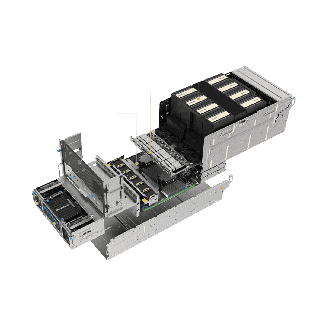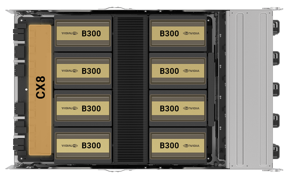 The GPU comes with 8 integrated CX8 InfiniBand ports, supporting up to 800G/s networking. This native integration delivers ultra-low latency and high-bandwidth connectivity, eliminating the need for additional NICs, simplifying system design, reducing cabling complexity, and optimizing both power consumption and space efficiency.