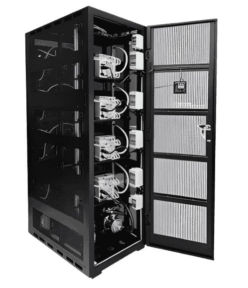 The cabinet side features a power control switch, heat exchanger, and components that provide a stable environment for hydro miners.